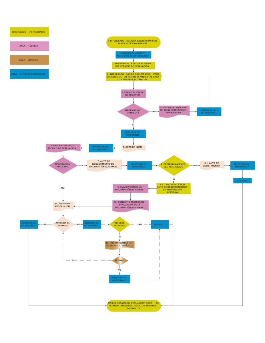 Diagrama de flujo del proceso de solicitud de un Permiso Ambiental para los Jardines Botánicos