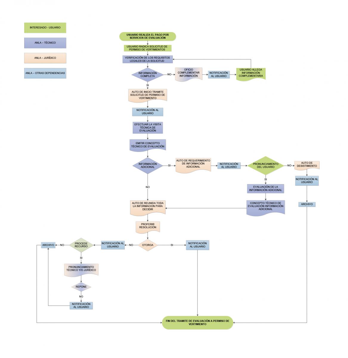 A continuación, se presenta el flujograma del proceso que se debe llevar a cabo, una vez sea elaborado y radicado para la solicitud de Permiso de Vertimientos de Aguas Residuales.