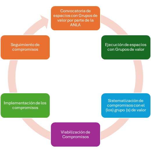 La identificación de problemáticas y/o necesidades de los grupos de valor son una parte fundamental para la gestión de lo público, en este sentido, la Autoridad Nacional de Licencias Ambientales ha empleado herramientas como el Simposio, congresos, paneles y grupos focales y espacios de diálogo o fortalecimiento, que permitan la recolección de información, la proyección de compromisos y ejecución de los mismos, a través de nuestros instrumentos de planeación y gestión.