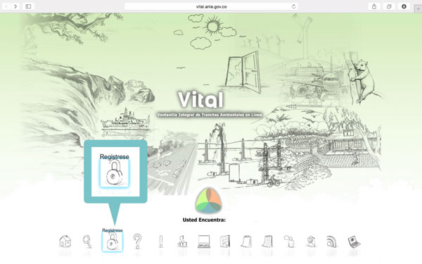 1. Considerando que el registro, la aprobación y la validación de los usuarios pueden hacerse con anterioridad a la solicitud del trámite, se invita a los solicitantes a adelantar dicho procedimiento a partir del miércoles 25 de marzo, siguiendo los siguientes pasos: Ingresar a la Ventanilla Integral de Trámites en Línea – VITAL y dar clic sobre el ícono Regístrese.