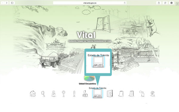 1. Ingresar a la Ventanilla Integral de trámites en línea – VITAL y dar clic sobre el ícono Estado del Trámite.