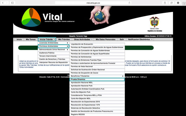 La Autoridad Nacional de Licencias Ambientales - ANLA informa a los interesados que a partir de lunes 06 de abril, el mecanismo de radicación dispuesto por la ANLA para realizar una solicitud de Certificación de Emisiones por Prueba Dinámica, será a través de la Ventanilla Integral de Trámites en Línea – VITAL.