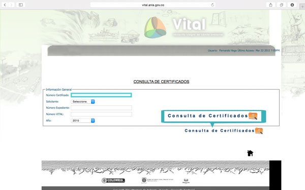 1. Ingresar a la Ventanilla Integral de trámites en línea – VITAL y dar clic sobre el ícono Consulta Certificado.