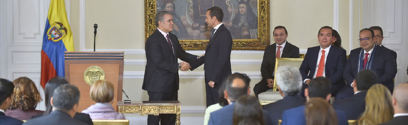 El nuevo director de la Autoridad Nacional de Licencias Ambientales (ANLA) -el Ingeniero Ambiental y Sanitario de la Universidad de la Salle y Administrador de los Recursos Naturales de la Universidad Santo Tomás, Rodrigo Suárez Castaño, tomó posesión ante el presidente de la República, Iván Duque Márquez.
