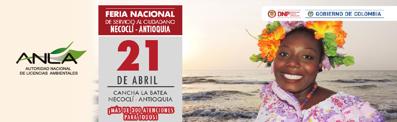 La Autoridad Nacional de Licencias Ambientales, ANLA, con su Grupo de Atención al Ciudadano, participará en la Feria Nacional de Servicio al Ciudadano en Necoclí, Antioquia, este sábado 21 de abril, cuyo enfoque será la región de Urabá.