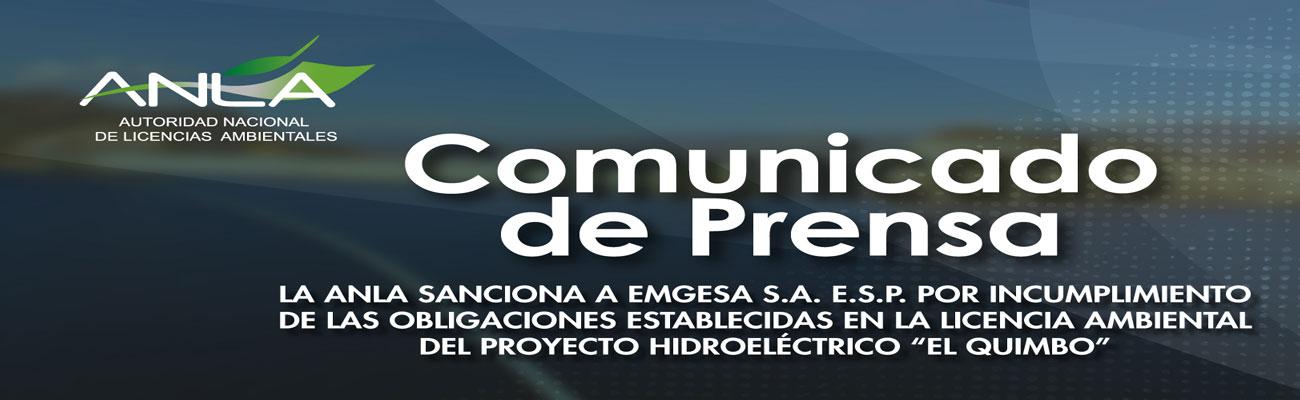 LA ANLA SANCIONA A EMGESA S.A. E.S.P. POR INCUMPLIMIENTO DE LAS OBLIGACIONES ESTABLECIDAS EN LA LICENCIA AMBIENTAL DEL PROYECTO HIDROELÉCTRICO “EL QUIMBO”