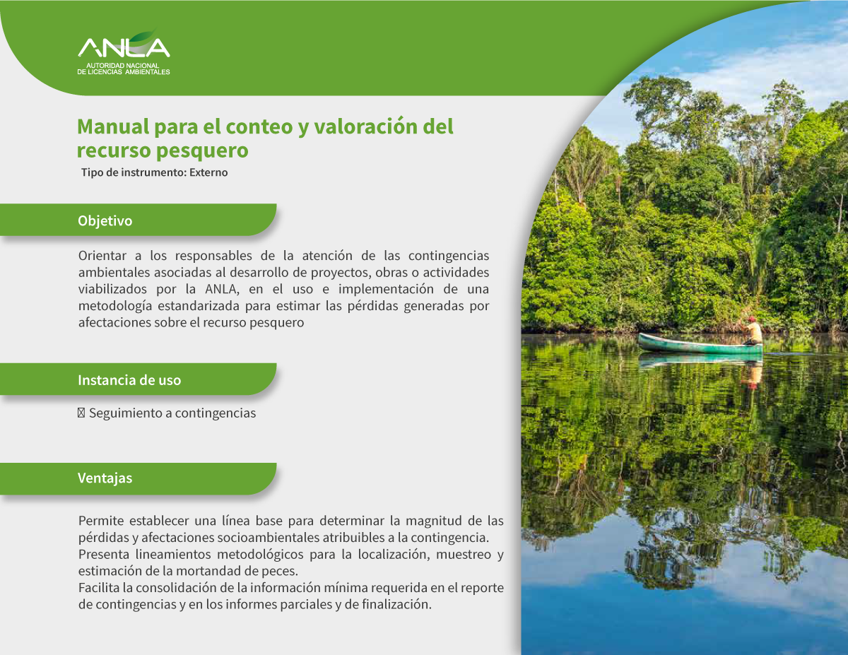 A continuación, se presenta información relevante del instrumento “Manual para el conteo y valoración del recurso pesquero” para facilitar su implementación por parte de los usuarios externos en la elaboración de los Estudios de Impacto Ambiental.