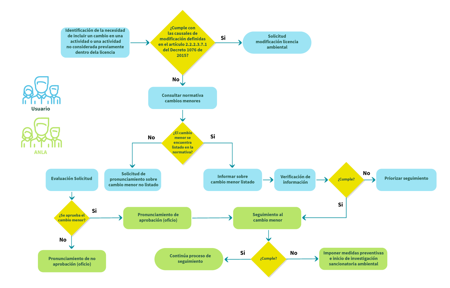 Los cambios menores o de ajuste normal dentro del giro ordinario de los proyectos licenciados corresponden a actividades que no impliquen nuevos impactos ambientales adicionales a los inicialmente identificados y dimensionados en el estudio de impacto ambiental. Estos cambios menores podrán corresponder a actividades listadas en la normatividad aplicable a cada sector, las cuales requieren ser informadas a la Autoridad y verificadas vía seguimiento, o a actividades no listadas en la normatividad que requieren pronunciamiento por parte de la Entidad para definir si es o no un cambio menor.