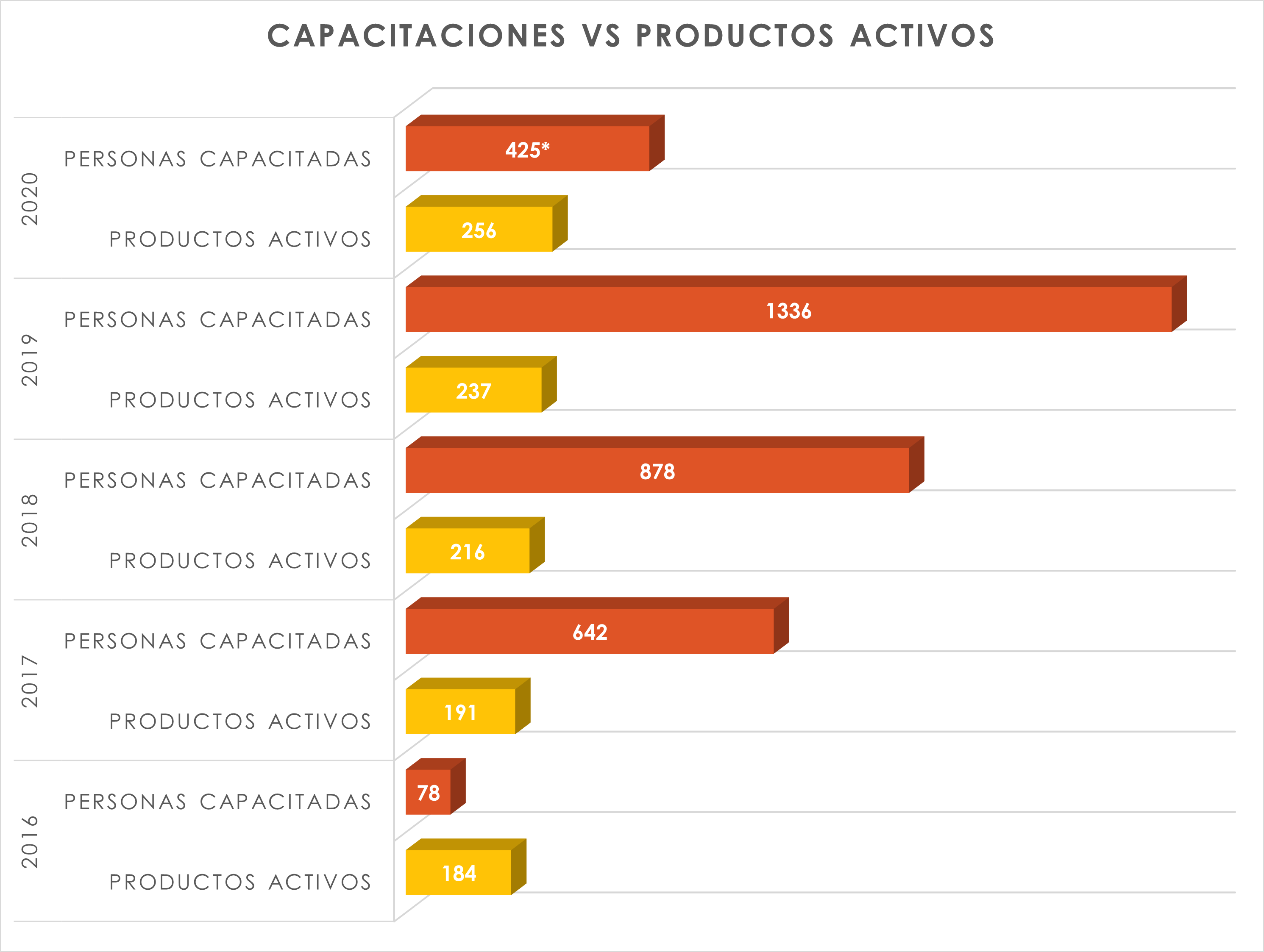 * para el año 2020 se evidencia un notable descenso en las actividades de capacitación debido a la emergencia sanitaria declarada por causa del coronavirus COVID-19, el cual afecto considerablemente la ejecución presencial de las capacitaciones. No obstante, se espera que para el año 2021 las cifras vuelvan a aumentar, producto de las políticas de reactivación económica implementadas por el estado colombiano.