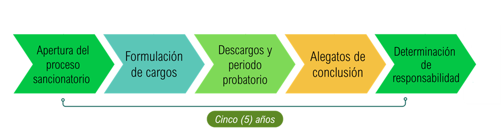 Según lo establecido por la Ley 1333 de 1999 (modificada por la Ley 2387 de 2024), la ANLA cuenta con un plazo máximo de cinco años desde la apertura del proceso sancionatorio para determinar responsabilidad. Asimismo, la ley establece que el procedimiento sancionatorio se ejecutará en la siguientes etapas: