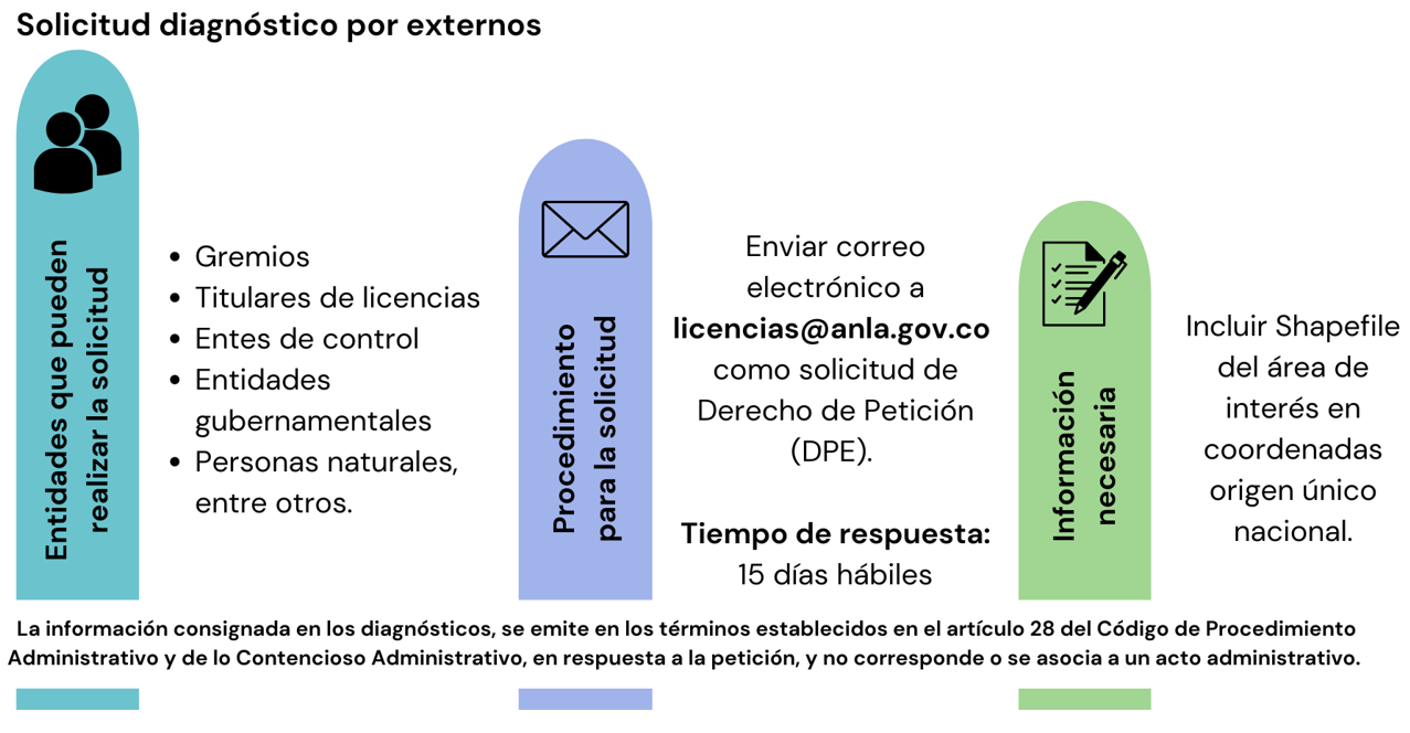Los Diagnósticos de Condiciones Socioambientales son un instrumento generado previo al licenciamiento ambiental, que se basa en la prospectiva sectorial de entidades como la ANH, ANM, UPME, entre otras, en donde se caracterizan áreas de interés para la estructuración de proyectos, lo que nos permite prepararnos para el proceso de licenciamiento ambiental. Las zonas analizadas en estos documentos tienen alta probabilidad de presentar solicitudes de licenciamiento ambiental en un corto a mediano plazo, por lo cual consideramos pertinente que se conozcan las consideraciones técnicas relacionadas a estas áreas.