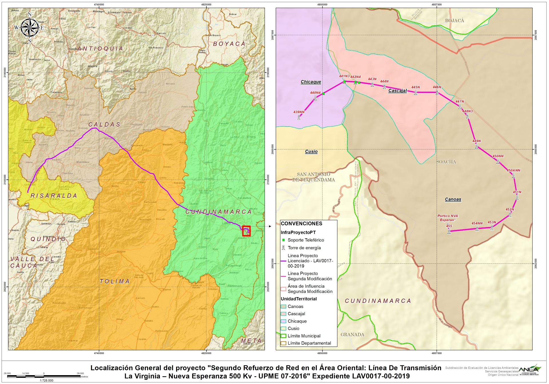 Mediante Resolución 170 del 15 de enero de 2021, la Autoridad Nacional de Licencias Ambientales -ANLA, otorgó Licencia Ambiental al proyecto Segundo refuerzo de red en el área oriental: Línea de transmisión La Virginia – Nueva Esperanza 500 kV - UPME 07-2016 - Expediente LAV0017-00-2019, en la que se negó el tramo comprendido desde la torre 439NN hasta la conexión con la Subestación Nueva Esperanza.