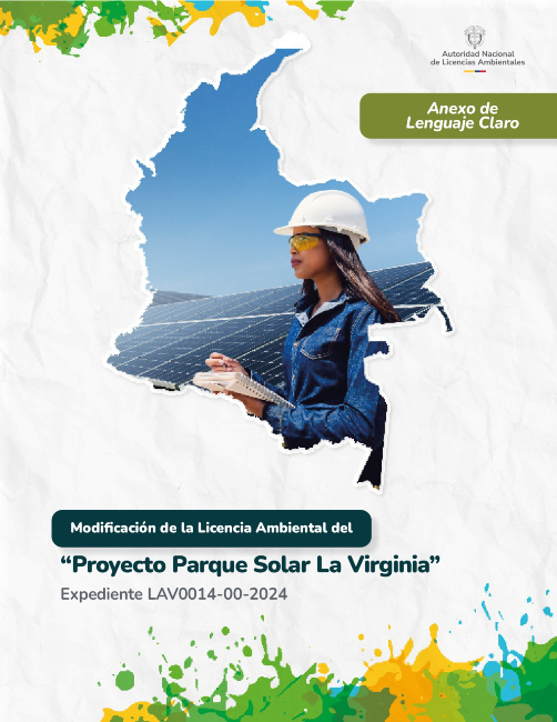 La ANLA dispone un glosario de información del proyecto Parque solar La Virginia (100mw) y su línea de conexión a la subestación La Virginia 220 kv