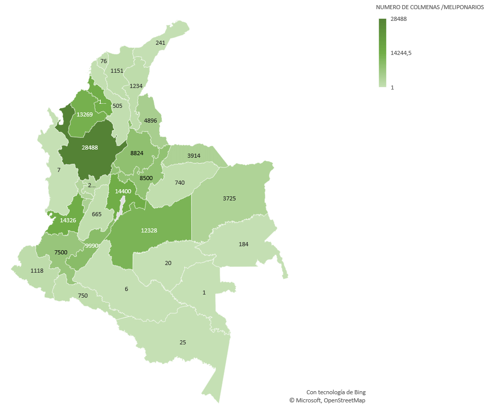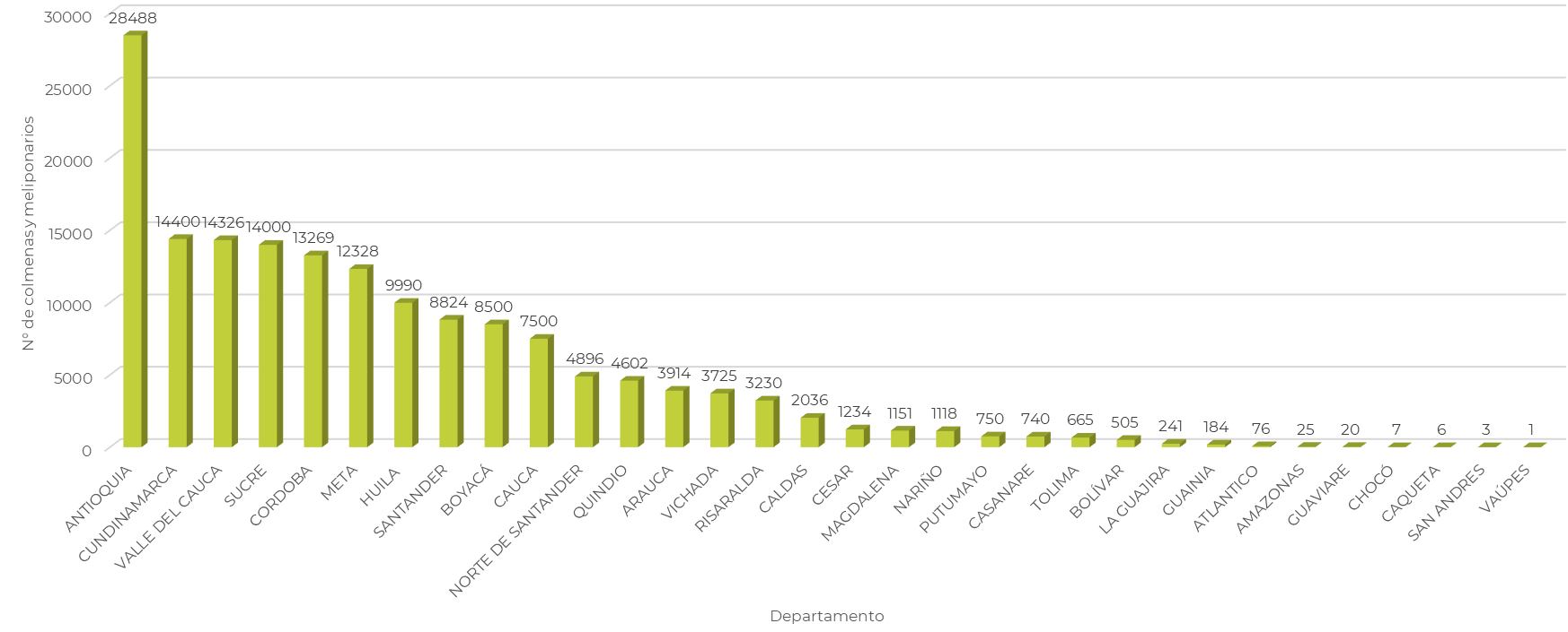 Fuente: Consolidación de datos de censos realizados por el Instituto Colombiano Agropecuario ICA (2023) y la Cadena Apícola del Ministerio de Agricultura (2022).